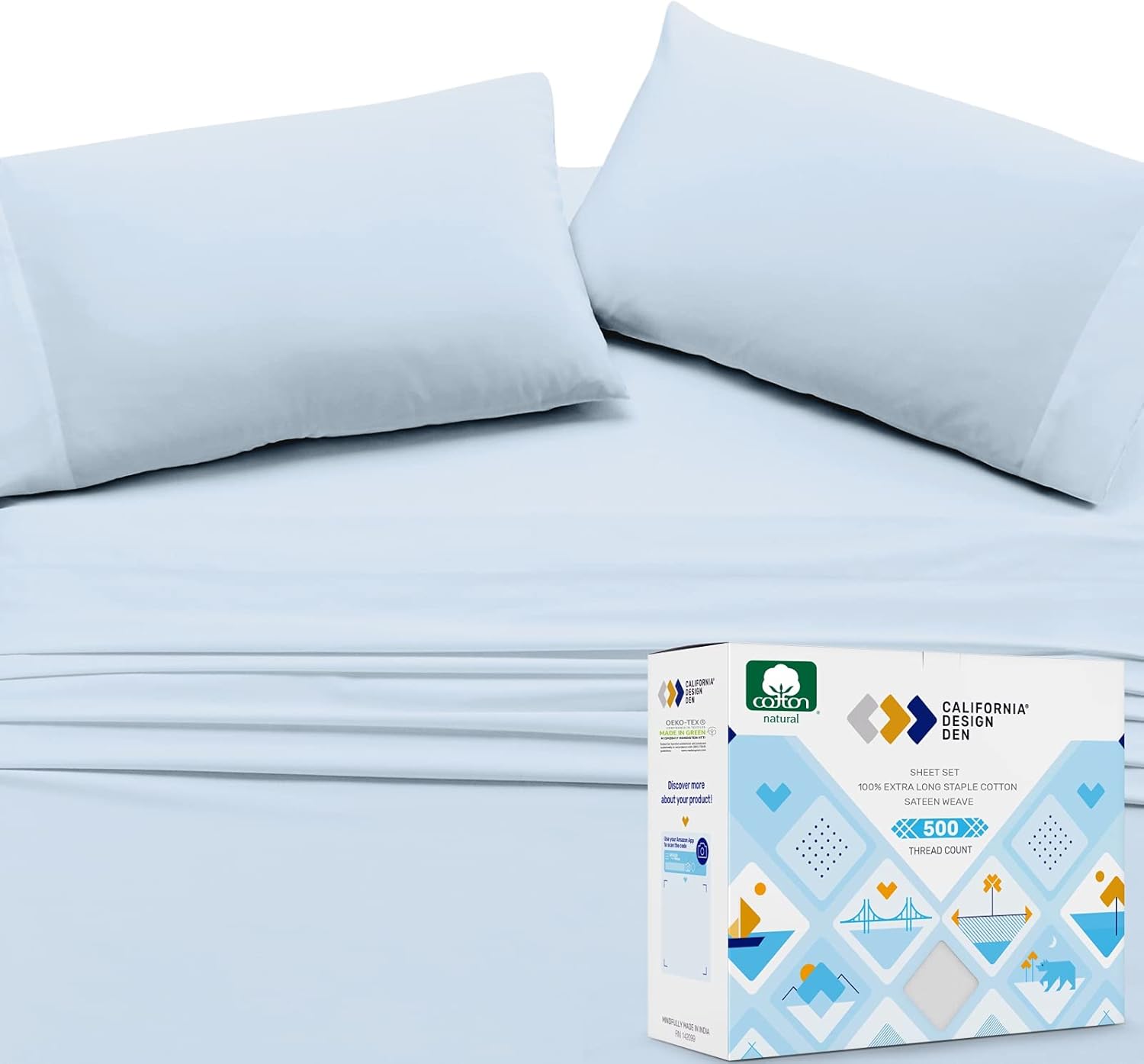 🔥 Cashback up to 70% California Design Den - Finest Queen Cotton Sheet Set, Soft 100% Cotton Cooling Sheets Deep Pockets Snug Fit Elastic, 500 Thread Count, 4-Pc Set, Sheet Sets for Bed (Solid - Light Blue) A quick website review
